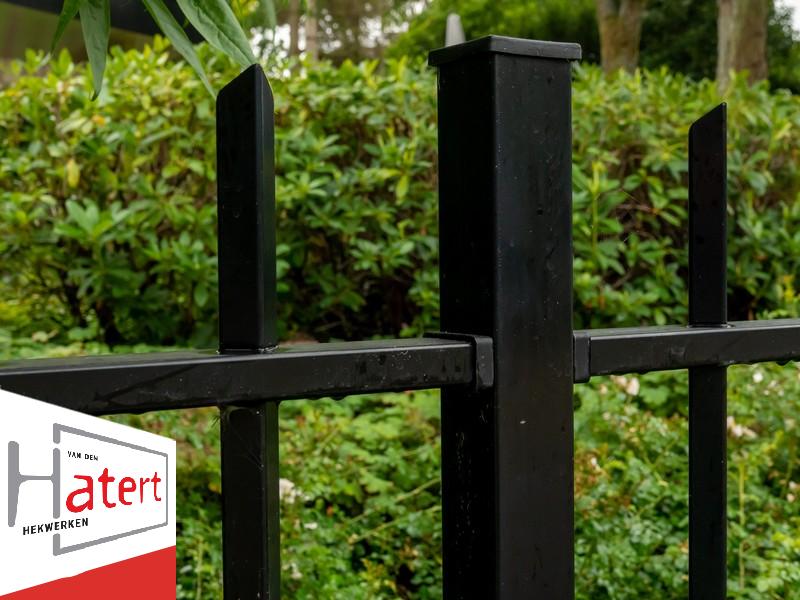 Dit type spijlenhekwerk combineert een klassieke uitstraling met een krachtige, strakke vormgeving. De vierkante spijlen steken door de bovenligger heen en kunnen zowel recht als overhoeks worden ingelast, afhankelijk van de gewenste esthetiek of toepassing.