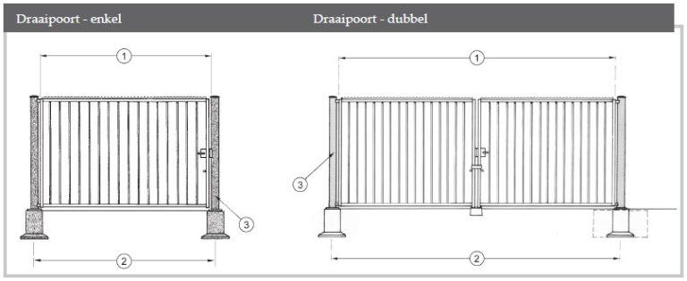 Schematische weergave van enkele en dubbele draai poorten bij Van den Hatert Hekwerken: