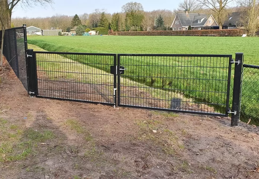 Wilt u minder inkijk of meer privacy? Dan kunnen wij uw draai poort afsluiten met een stalen plaat, of door middel van blinderingsstroken in een dubbelstaafmat-vulling. Hieronder vindt u enkele voorbeelden van hoe u dat kunt realiseren.