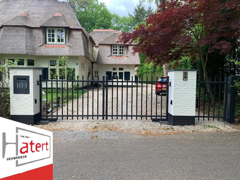 Ideaal voor het afsluiten van brede doorgangen, bijvoorbeeld bij oprijlanen of bedrijfsterreinen. De poort is standaard voorzien van een dag- en nachtslot met europrofiel cilinder en aluminium deurkruk, wat zorgt voor een veilige en gebruiksvriendelijke toegang.